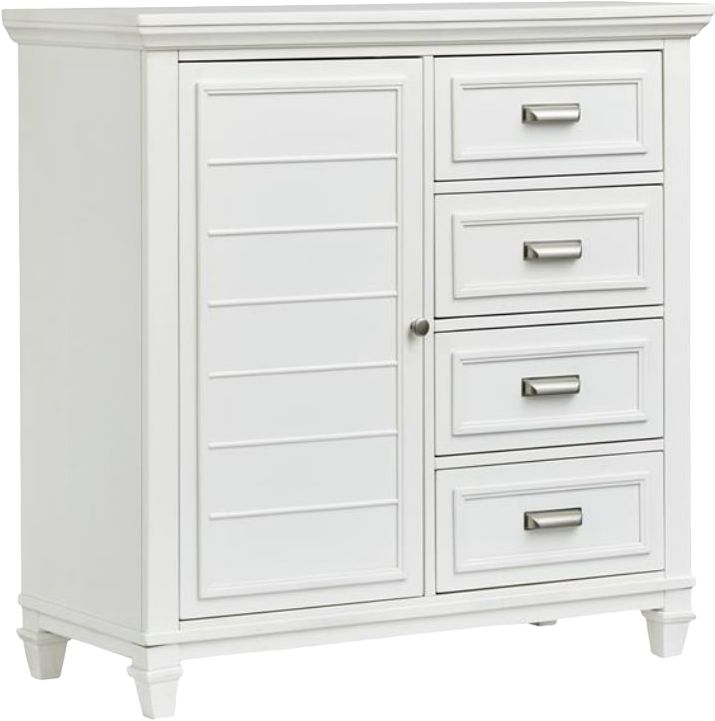 The Charleston bedroom collection offers charming, versatile style for dreamy bedrooms. Clean lines suit various decors—cottage, coastal, or modern farmhouse. Louvered details on the headboard and door panels add classic charm. White Dove finish with Brushed Pewter hardware creates essential design elements. Ideal for guest rooms and master retreats.Read More