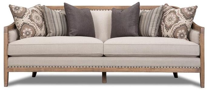 Chic exposed wood frames and fresh linen covers create outstanding design and silhouettes in the Colburn collection. Tailored like a fine suit, the beautiful curved and shaped sides are offset with crisp nail head trim. Quality abounds with a solid wood frame finished in the warm Ultralux finish while contrasting throw pillows create the perfect accent.