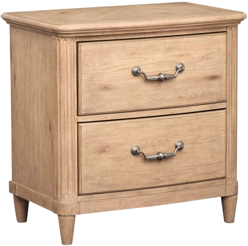Finished in Belgium Wheat, this collection pairs Knotty White Oak veneers and warm pewter hardware with fluted legs, reeded details, and cozy textures. Subtle distressing and a camel faux leather bed panel create a relaxed, traditional style with timeless, livable charm.Read More
