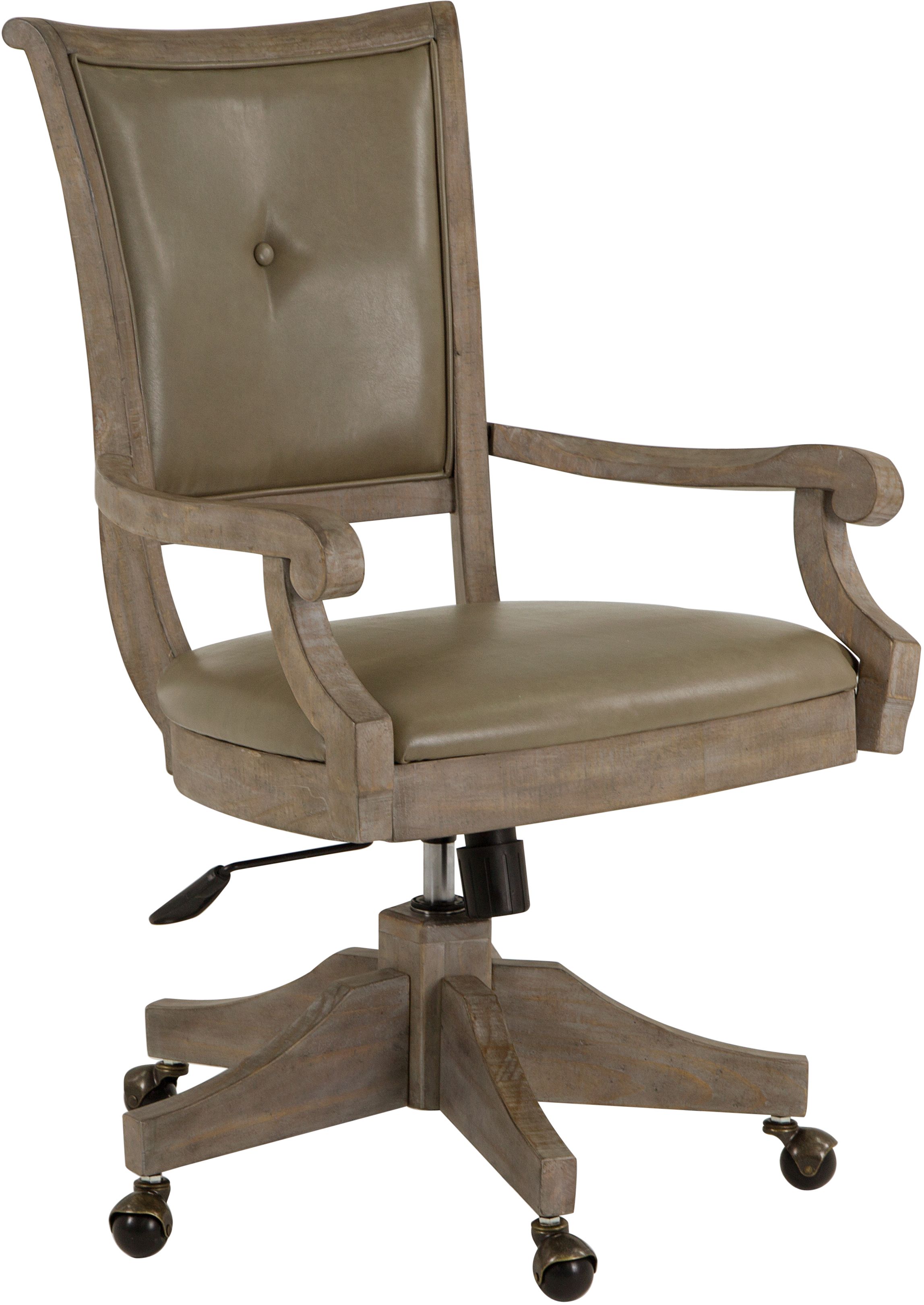 The Magnussen Home® Lancaster Dovetail Gray Swivel Chair blends rustic charm with practical function. It features a dovetail gray wood finish, an upholstered seat and back, adjustable seat height, and smooth-rolling casters. Designed to complement the Lancaster collection, it brings comfort, mobility, and style to any home office spaceRead More