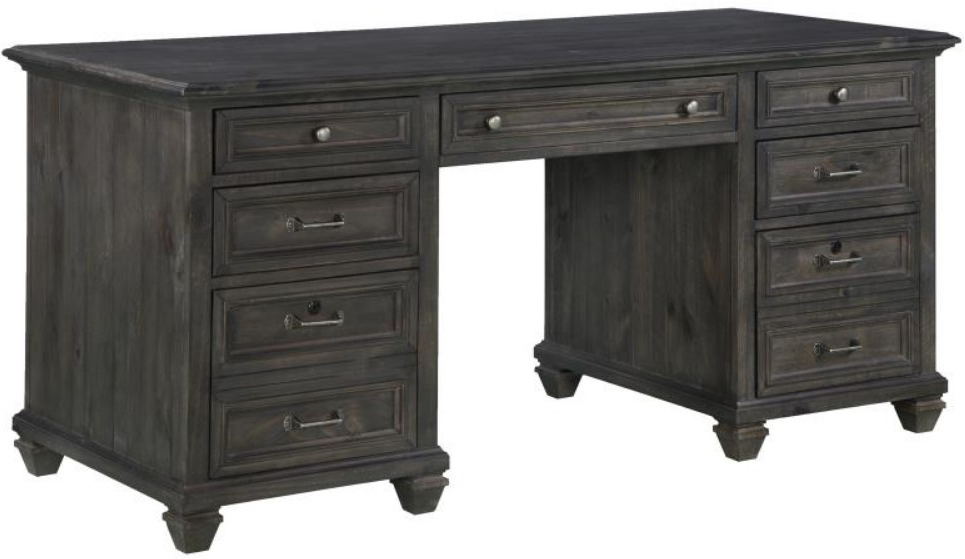 A rustic European vibe present in the weathered charcoal finish and Continental inspired details adds appeal and interest to the Sutton Place home office. Felt lined top drawers, side mount ball bearing guides, English and French dovetailed drawer construction, and the highest quality construction standard to Magnussen Home.Read More