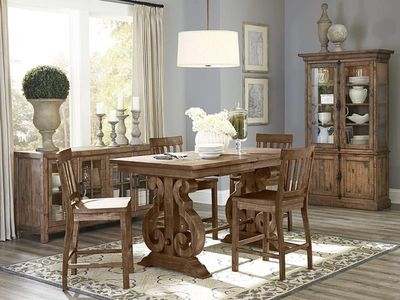 Perfectly proportioned to accommodate sprawling school crafts, fits of amateur bread making or the usual holiday assemblage, our classically inspired Willoughby group maintains its pristine demeanor no matter what the task. Piled high with projects as it does all on its own, this group features pine solids and antique brass hardware with a pewter overlay.