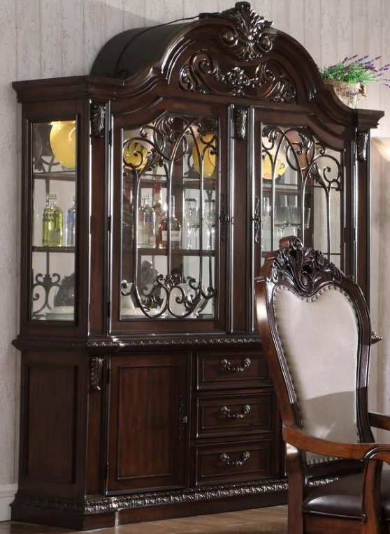 Enhance your dining room with the timeless elegance of this buffet and hutch. Crafted with a rich brown finish, it offers ample storage with drawers and cabinets while the glass-front hutch beautifully displays your fine china or décor. Perfect for entertaining, this piece combines style, function, and lasting quality.Read More