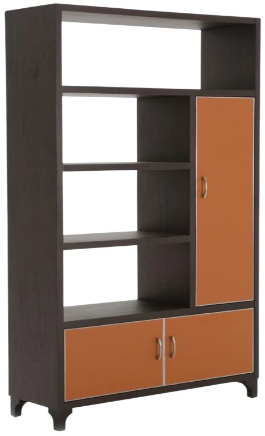 The 21 Cosmopolitan™ Right-Door Bookcase features a right-side door for concealed storage and open shelving for display. Finished in diablo orange and umber, it provides versatile storage space for books, décor, or office essentials, offering a practical and functional solution for home or office organization.Read More