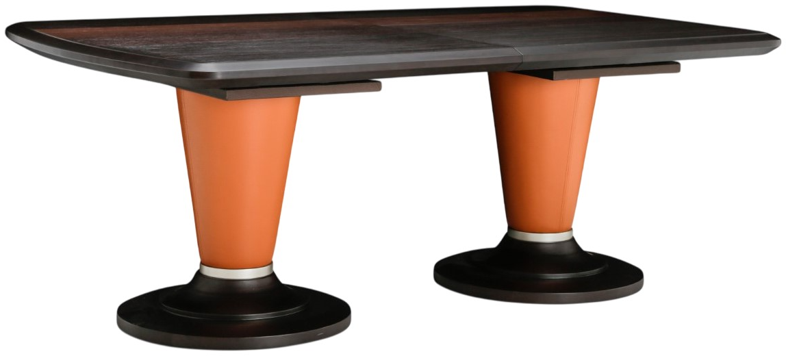 The 21 Cosmopolitan™ Rectangular Dining Table features a durable umber-finished top paired with a sturdy diablo orange and umber base. Its generous rectangular surface provides ample space for dining or entertaining, ensuring functionality and reliability for everyday meals or larger gatherings in any home setting.Read More