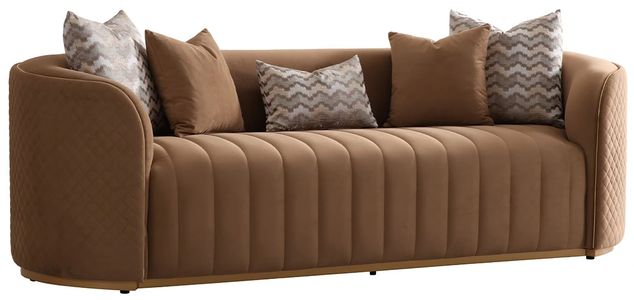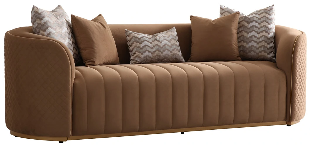 The Michael Amini® Ariana sofa in caramel gold upholstery brings timeless sophistication and regal charm to your living room. With its elegant silhouette, plush seating, and ornate details, this luxurious piece is perfect for traditional and upscale interiors seeking statement elegance.Read More