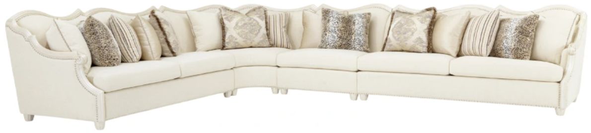 This 4-piece sectional is part of the Chamberi collection and features a classic pearl finish. The set includes a left-arm-facing loveseat, armless loveseat, wedge, and right-arm-facing loveseat. The durable construction and elegant pearl finish make this set a stylish and practical addition to any home.Read More