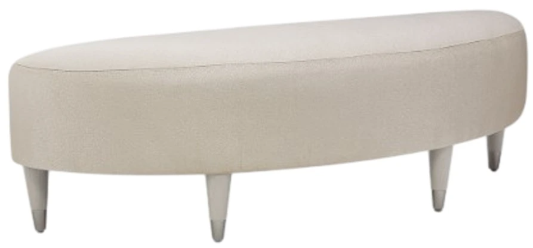 The Michael Amini® Eclipse Ivory/Moonlight Bench is a sophisticated accent piece with a gracefully curved front that mirrors the Eclipse Bed’s design. Upholstered in soft ivory fabric, it adds both elegance and comfort to any space. Perfect for placement at the foot of the bed or as stylish seating in any room.Read More