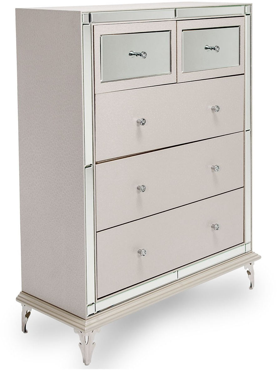 The Hollywood Loft collection by Michael Amini & Jane Seymour, A Design Collaboration is scaled and proportioned for smaller spaces yet with all the glitz, glamour and functionality of our larger collections. The unique combination of materials blend masterfully with the subtle tones of the finish, creating fashion for the home.