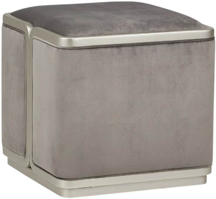 This ottoman blends sophisticated design with luxurious comfort. Upholstered in a soft gray pearl fabric with silver mist accents, this ottoman offers both style and functionality. Its plush cushioning provides a comfortable seating or resting area, while the elegant design enhances any living space.Read More