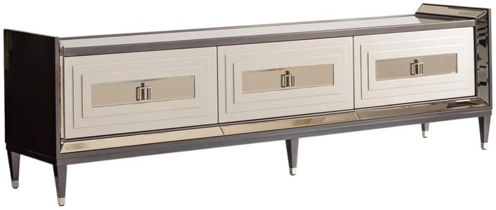 Introduce modern elegance into your space with the Lousanne Media Cabinet. Dressed in glossy mocha sand, the cabinet boasts three spacious drawers for your essentials. Its beveled mirrored accents subtly echo the luxury that defines the Lousanne collection.Read More