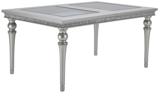 Dine like a queen all year. With the Melrose Plaza Dining table, you'll look forward to hosting parties and setting the table for lunch. Elegant and glam, you can easily elevate your dining room with sleek, platinum finished legs, a crystal encrusted apron, and vinyl table trim.Read More