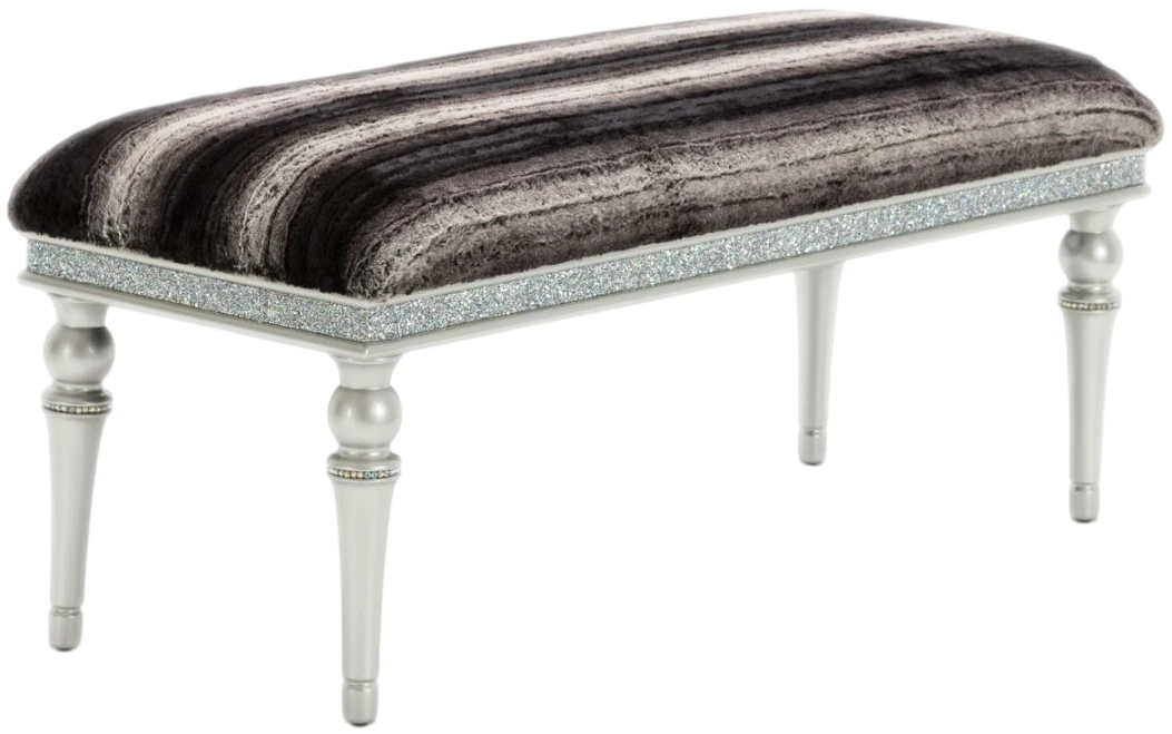 Platinum-Finished Tapered Legs: Sleek tapered legs in a luminous platinum hue introduce a modern edge while elevating the bench’s sophisticated profile.