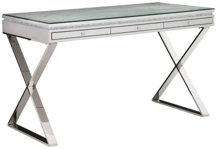 Your workspace should bring you joy and productivity. The Melrose Plaza Writing Desk was made to keep things classy and contained with three slim, velvet lined pencil drawers and a clear, easy-to-clean glass tabletop. Add a stunning glam design, and you have a beautiful desk that's guaranteed to spark your inspiration.Read More