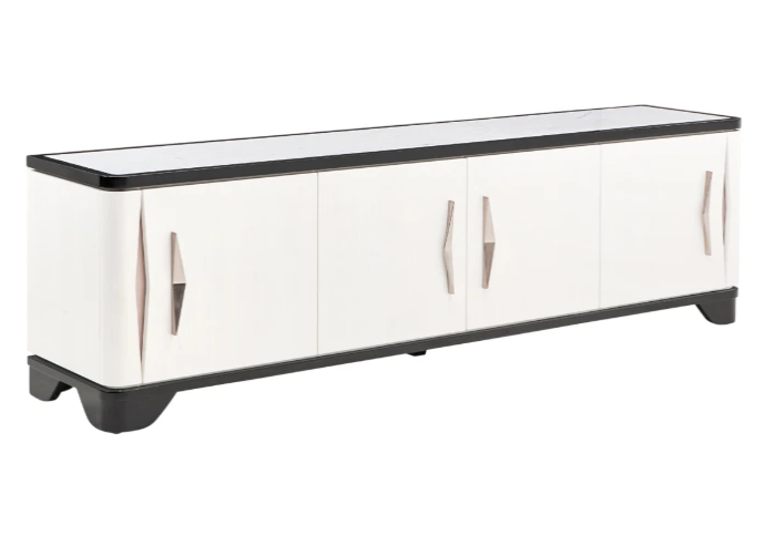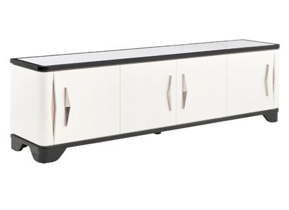 The Tuxedo piano keyboard media cabinet is crowned with a luxurious marble inlay that adds a touch of opulence to its sleek design. The cabinet features internal adjustable shelving, offering customizable storage solutions for all your entertainment essentials. Additionally, strategically placed grommets for cables ensure your setup remains neat.Read More