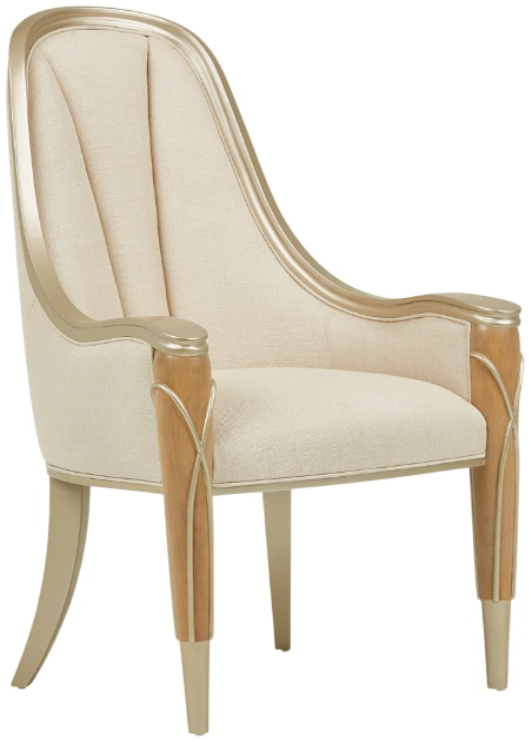 Every curve counts. The Villa Cherie Arm Chair's timeless style is defined by its sweeping lines and elegant shapes. Showcasing channel tufted upholstery and Chardonnay accents that give off a soft shine, this design is guaranteed to elevate luxury dining spaces.Read More