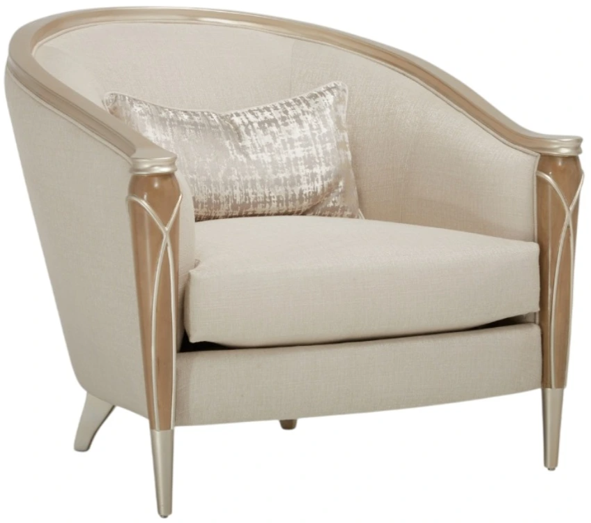 Create the perfect scene with the Villa Cherie matching chair. Accented with beautiful crossed rope motifs and upholstered in a softly shimmering frosted linen, this piece is ready to tie your gorgeous living room together.Read More