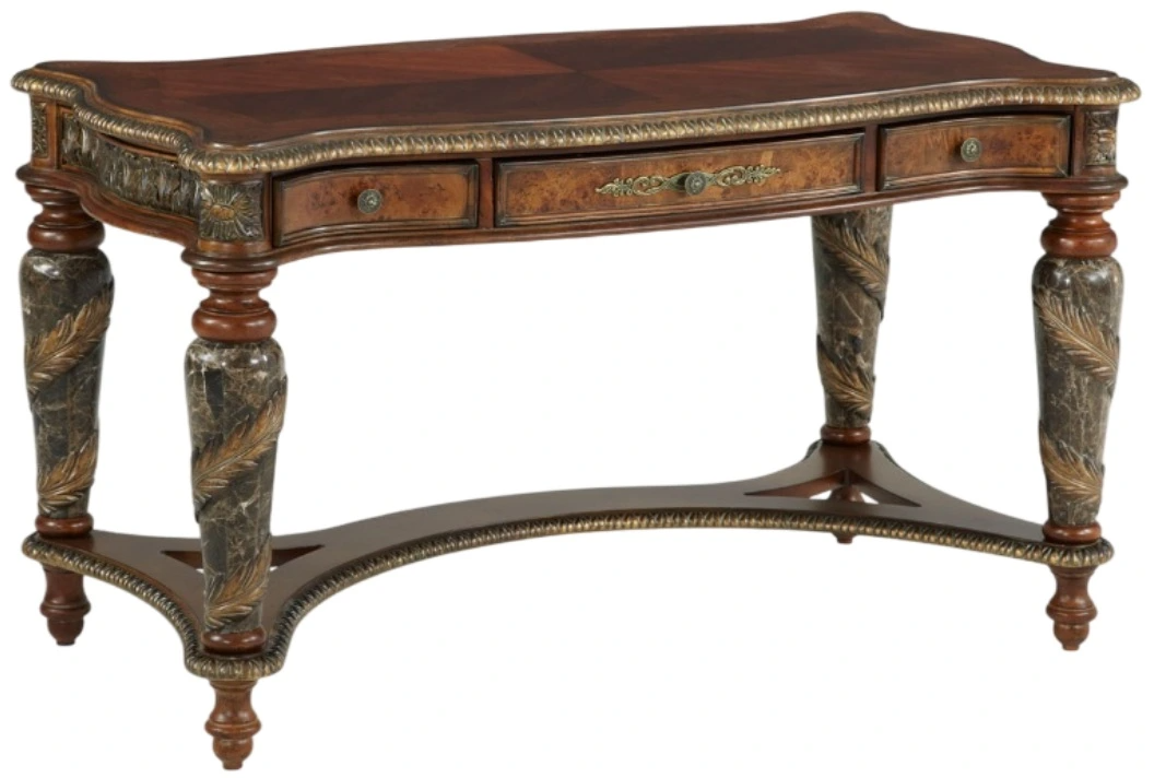 A true statement of regal sophistication, the Villa Valencia Writing Desk transforms any workspace into a grand salon of refinement. Impeccably finished in a deep, distressed chestnut hue, this masterpiece draws inspiration from the palatial furnishings of Old World Spain.Read More