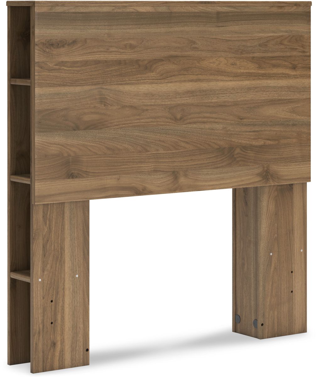 Dare to take minimalism to the max. This twin bookcase headboard has a richly relaxed feel thanks to its honey brown finish over replicated wood grain. A space-efficient storage option, cubbies along the side ensure you can keep your favorite reads within reach. USB charging keeps up with your high-tech lifestyle. There's no doubt about it: This contemporary piece is sure to become a classic.Read More