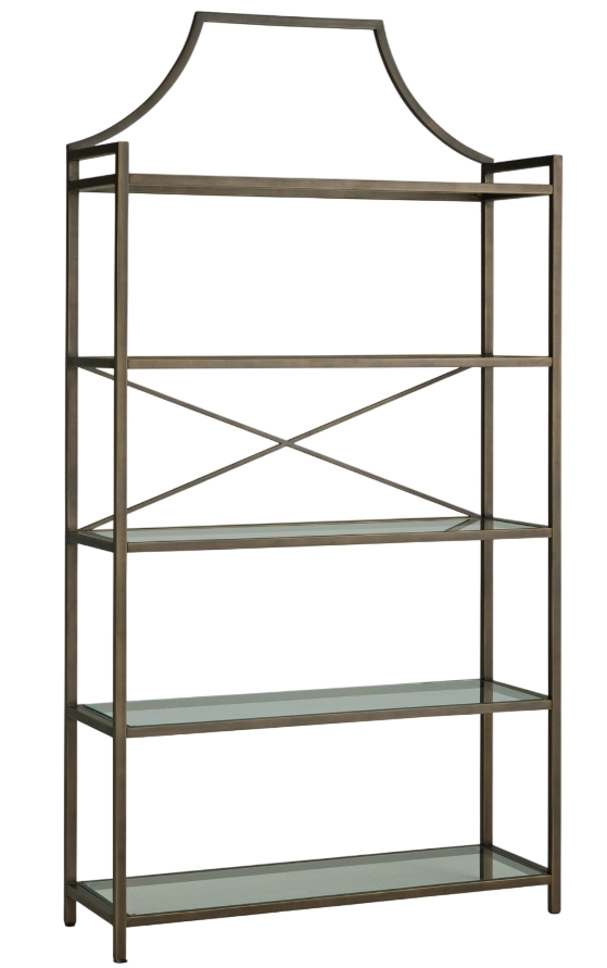 Classic design effortlessly blends with modern functionality in this elegant bookcase. Its antiqued bronze-tone finish adds a touch of warmth and sophistication, while the clear glass shelves create an airy and spacious feel. It’s exactly what you’ve been searching for to display your treasured books, digital picture frames or decorative accents.Read More
