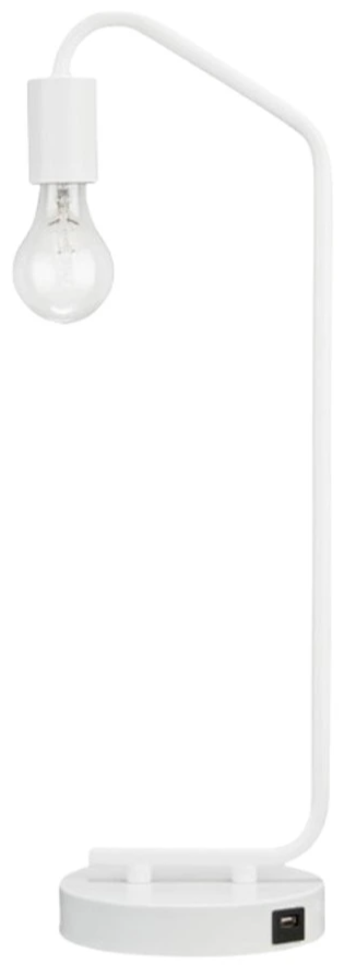 Brilliant in its minimalist form, this desk lamp suspends its exposed bulb in one sleek swoop. Constructed of metal, the compact, lightweight lamp features a single USB charging port. We see it glowing bedside, on a bookshelf or on either end of a credenza.Read More