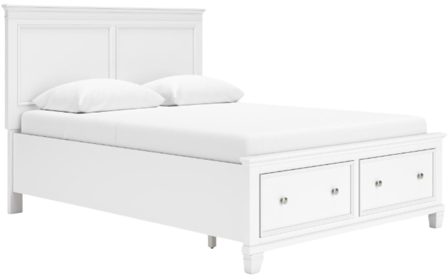 The casual design of this queen panel storage bed introduces a time-honored look to your restful retreat. The beautifully crafted piece is built to last, with distinctive framing that gives its headboard and storage footboard brilliant dimension. And its extra-deep drawers are perfect for storing larger bedroom essentials.Read More