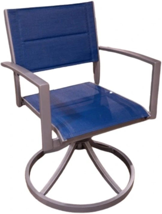 Bring casually cool style outdoors with this sling swivel chair. Sturdy aluminum construction and a goes-with-anything gray finish make it the perfect patio or porch companion. A comfortably padded sling seating area in a beautiful blue hue completes the look.Read More