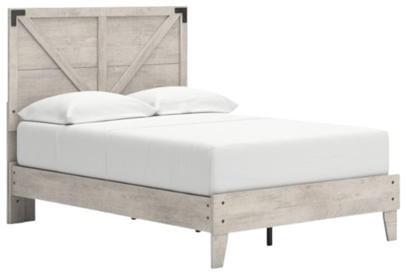 Give casual a new meaning with the chic look of the Shawburn full platform bed. A light gray finish over replicated oak grain keeps it laid-back and inviting, while crossbuck details and pewter-tone accents add a modern farmhouse touch. Talk about a delightfully relaxed vibe in your inner sanctum.Read More