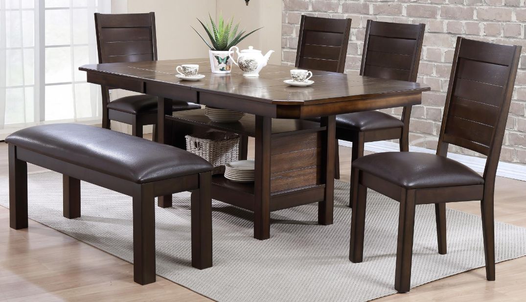 Set Includes: Dining table, bench and four (4) chairs