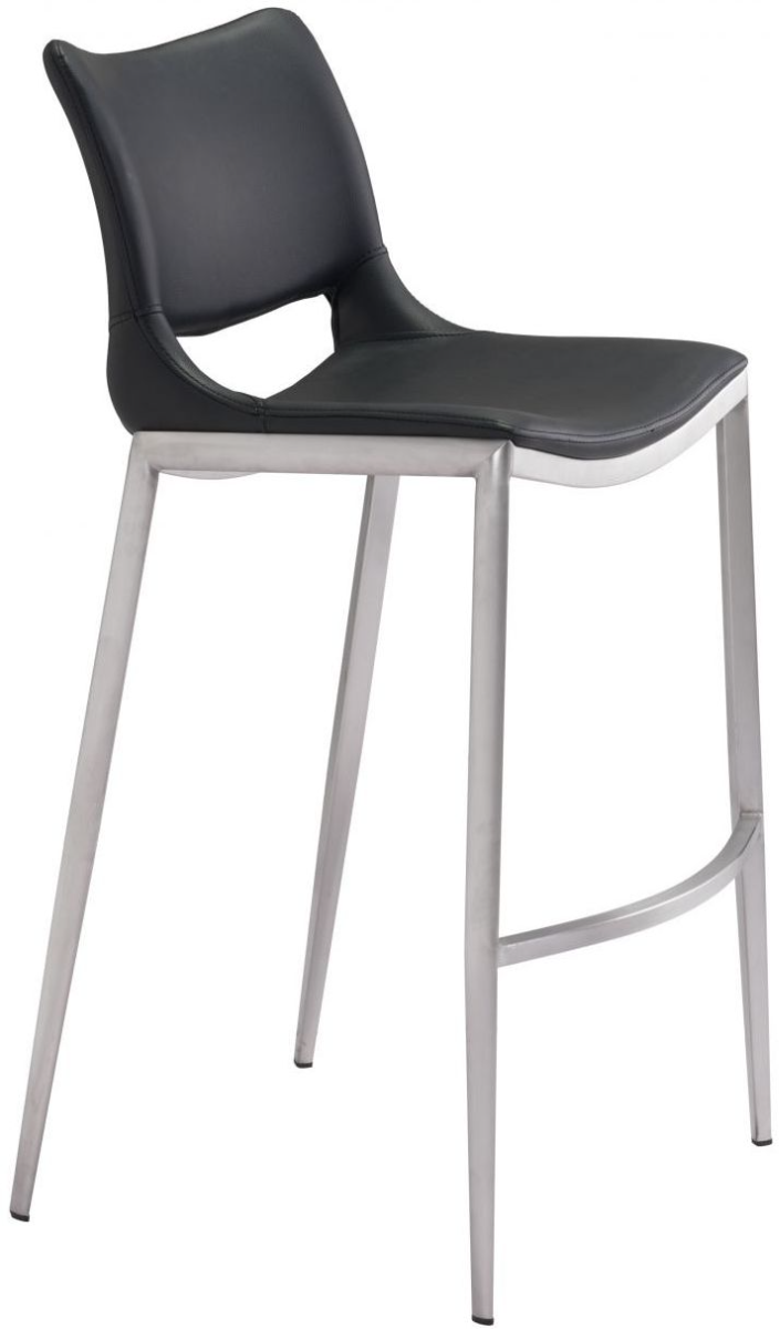 Built for comfort, this ergonomic bar chair is the perfect solution for your home or office space. A brushed stainless steel frame plays a supporting role while the built-in curved footrest keeps you firmly planted. Black faux leather seat deck is sleek and modern, making this bar chair the perfect compliment to any room setting.Read More