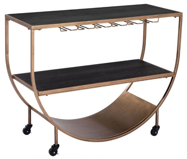 The sleek MDF top not only offers a contemporary allure but also provides a functional surface for serving cocktails, displaying decor items, or even holding your favorite books and accessories. The Bechet Bar Cart becomes a mobile centerpiece for your creative expression and a perfect addition to your entertaining arsenal.Read More