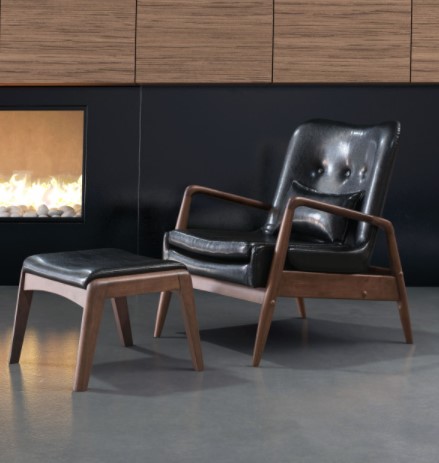 Mid-Century Modern re-invention as the Bully Lounge Chair and ottoman are paired perfectly with slim sculpted arms, plush button tufted seat, back and ottoman details for a posh look. Upholstered in a comfy textured fabric contrasted by sturdy wood frame finished in a rich warm walnut stain. Collection includes Lounge chair & ottoman set in either Black, White faux leather or a Beige polyester fabric.Read More