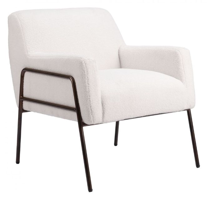 This chair is wrapped in a boucle style polyester and a powder coated steel frame. This chair has soft modern look with plush deco and boho lines. It looks great in any space, hotel lobby, spacious loft, or glam bedroom.Read More