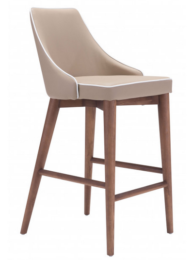 Moor counter chair features an exquisite slim wing back style back and plush seat with contrasting accent trim detail and a sturdy all wood base/ footrest in warm walnut finish.Read More
