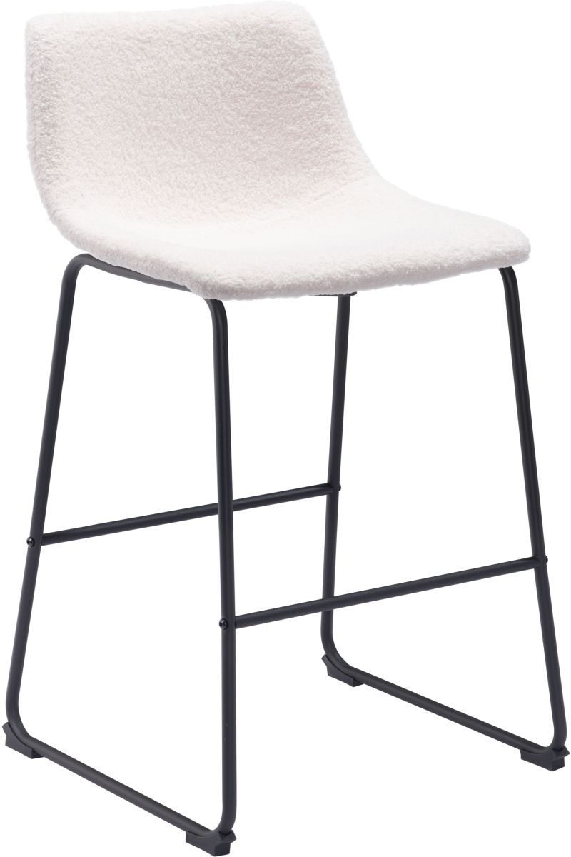 This counter chair's seat and back are built with a sculpted design for comfort. It's upholstered in a soft 100% Polyurethane fabric, with a slim profile metal base and two crossbars for stability. The frame is finished in matte black, for a universal appeal.Read More